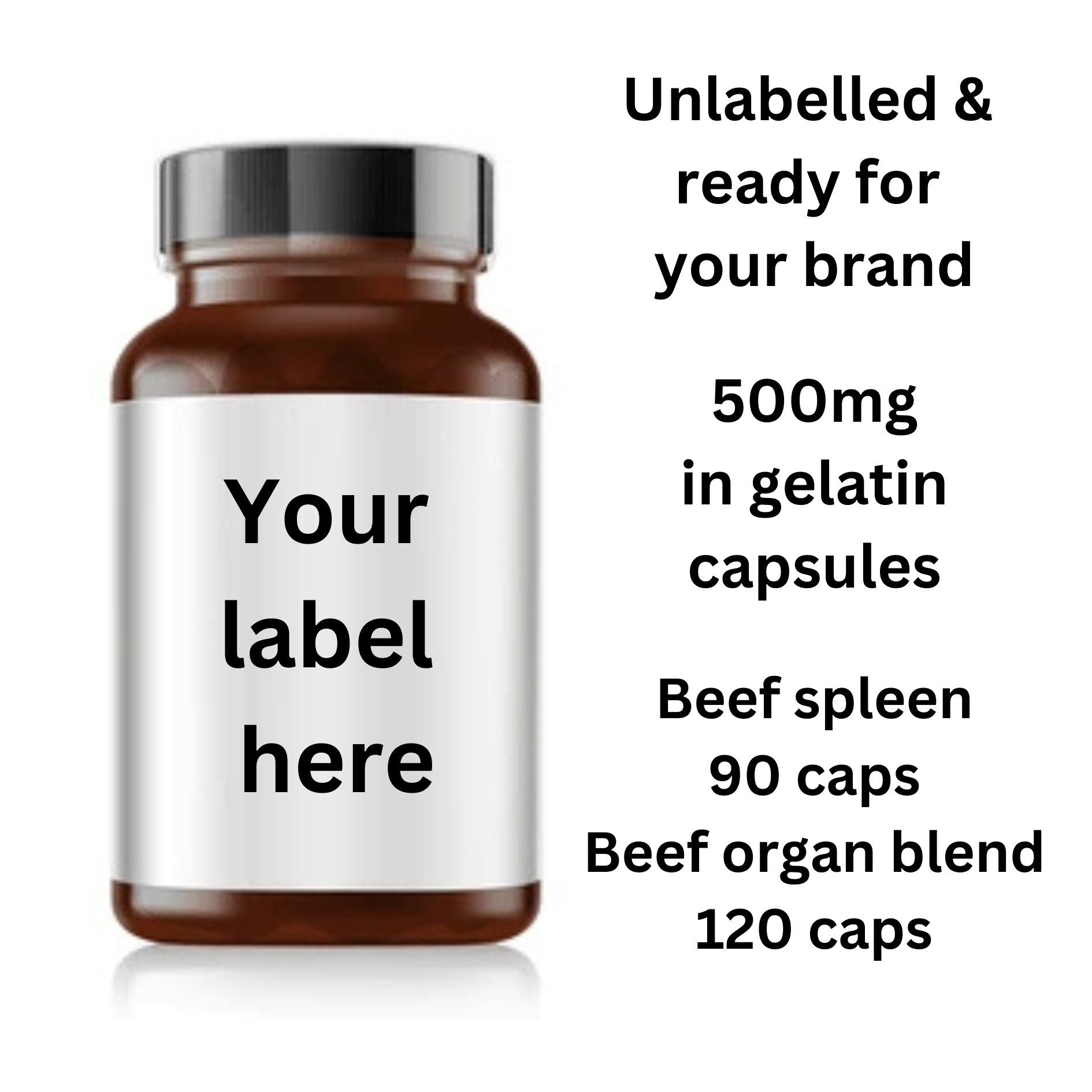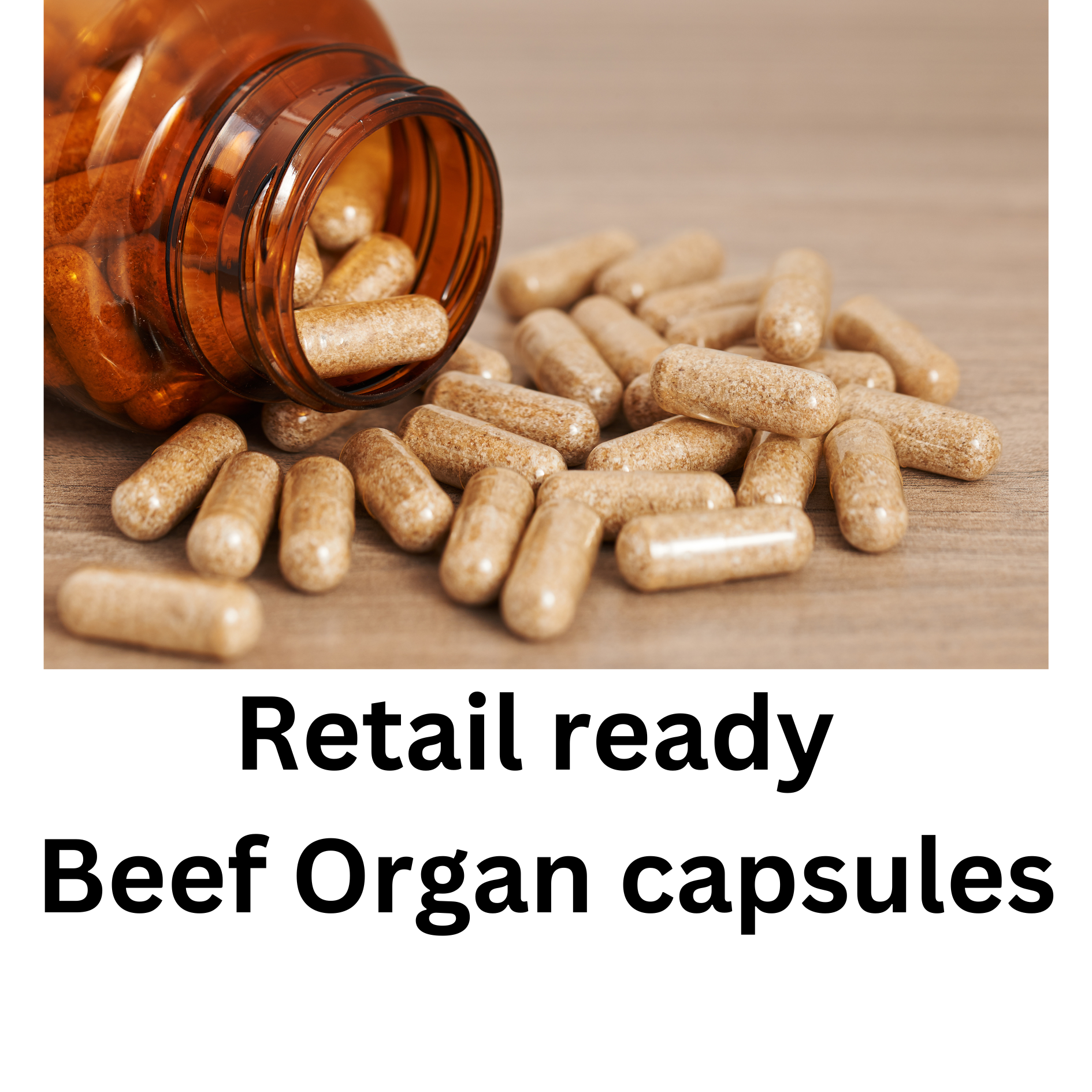Perfect for small business retail start up, these jars are unlabelled, filled, sealed and ready to attach your own brand with 100% Grass-fed & finished, Organic Australian Beef organ capsules in the below two types.